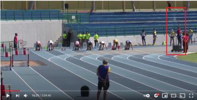 Es gibt auf Youtube ein paar Serien dieses Wettkampfes. Es stimmt es sind viele Funktionäre im Startbereich. Aber du hörst keinen Schuss und siehst auch keine Hand mit Pistole. Der Wind wurde manuell gemessen aus meiner Sicht dort sass ein Funktionär die ganze Zeit etwa bei 50 m. Ich habe auf den Ranglisten auch kein Zielfoto gesehen.